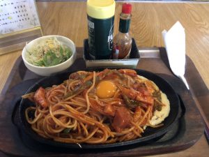 私が頼んだのは、大盛りナポリタンです。ナポリタン定食を頼まれる方が多かったのですが、食べてみて分かりました。