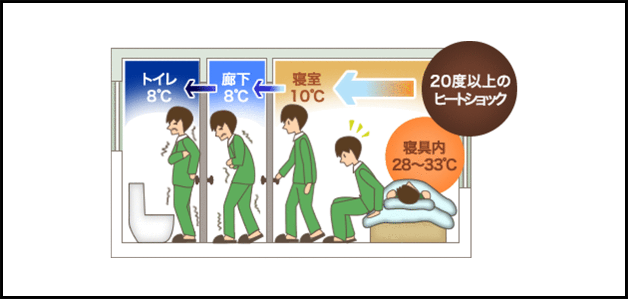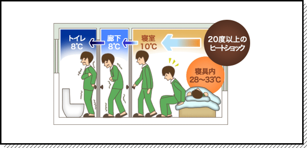 室内でのヒートショックの死亡リスクを大幅軽減します。 -