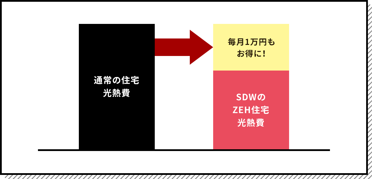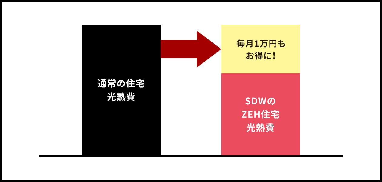 通常の住宅よりも毎月約1万円も光熱費が安くなる!