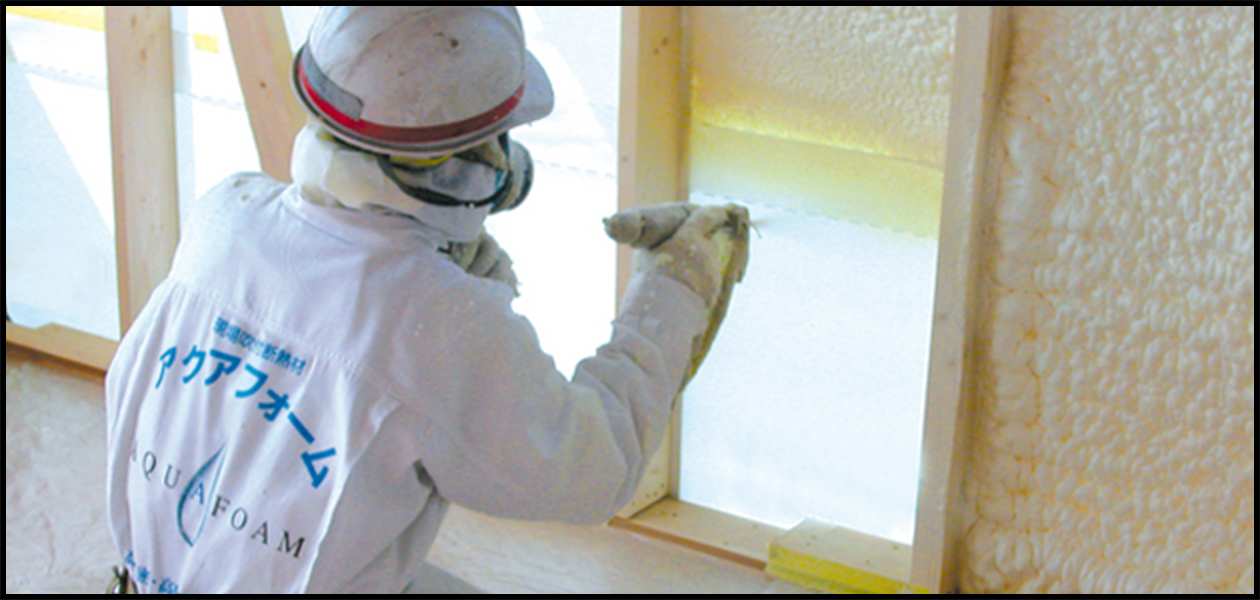 「アクアフォーム」断熱性・気密性・吸音性に優れている。