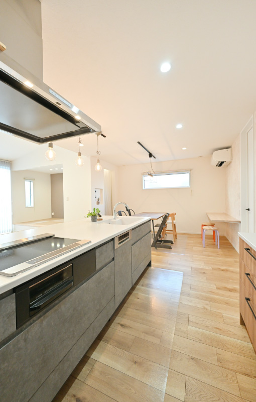 昔住んでいたアパートは寒かったんですけど、この家ではとても暖かく過ごしています。平屋は動線が1階で完結するというのがとても魅力的で、対面キッチンにしたので子どもが遊んでいる様子を見ながら料理をしたりとか、とてもいいなと思っています。