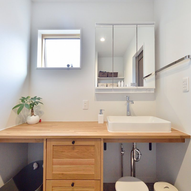洗面台は広いので、家族並んで朝の支度もできそうです。 -