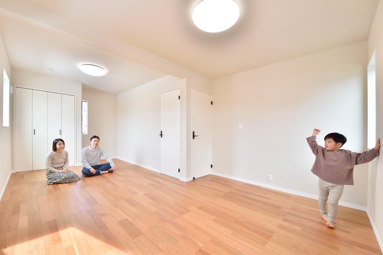 小さいうちは間を仕切らず、大きくなれば壁を造れるように将来を見据えた間取りになっています。 -
